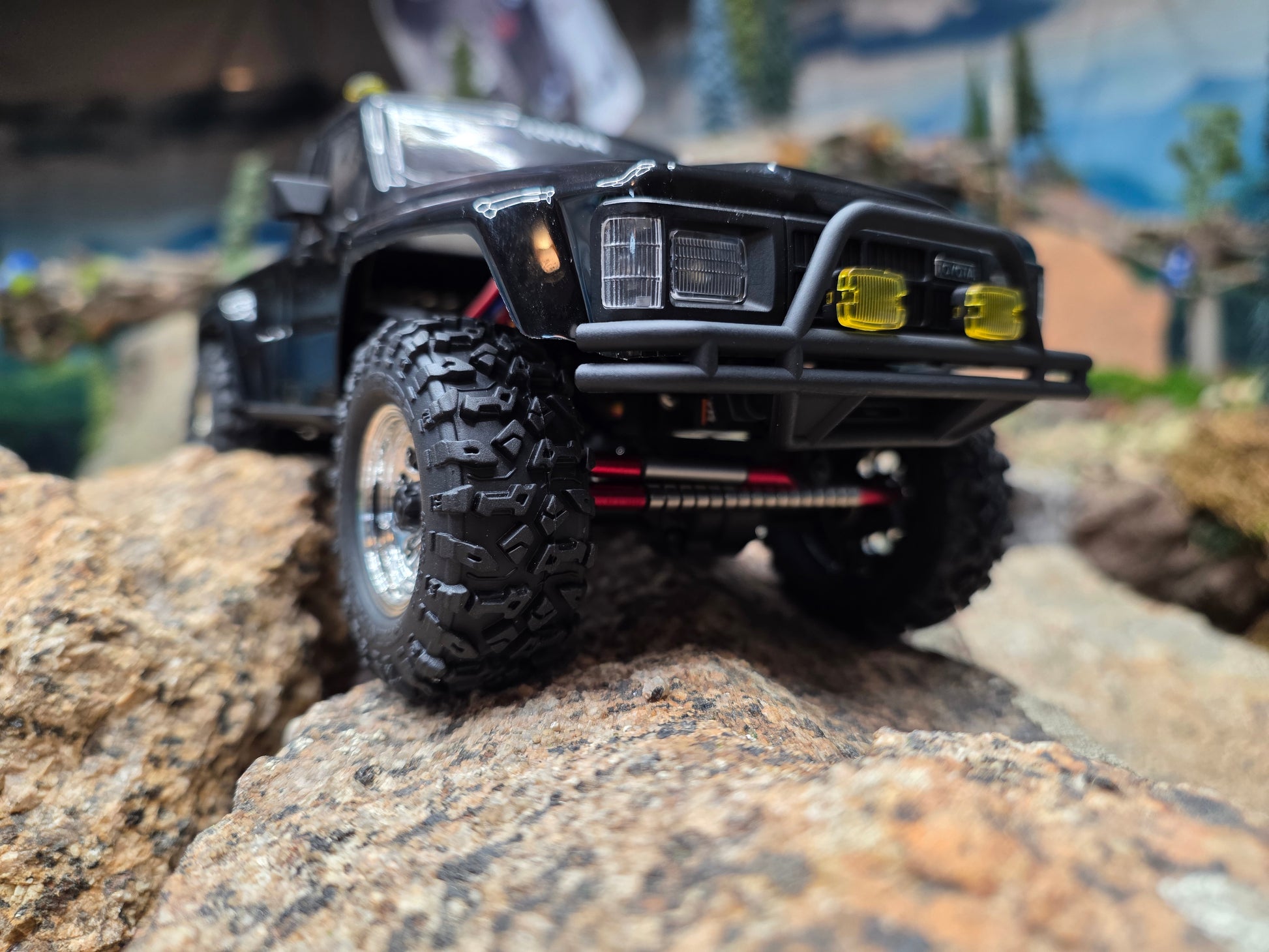 For rock crawling Toe-out gives you a better initial turn in on corner entry but will make the truck unstable under acceleration(faster trucks) on the straights and on bumpy tracks